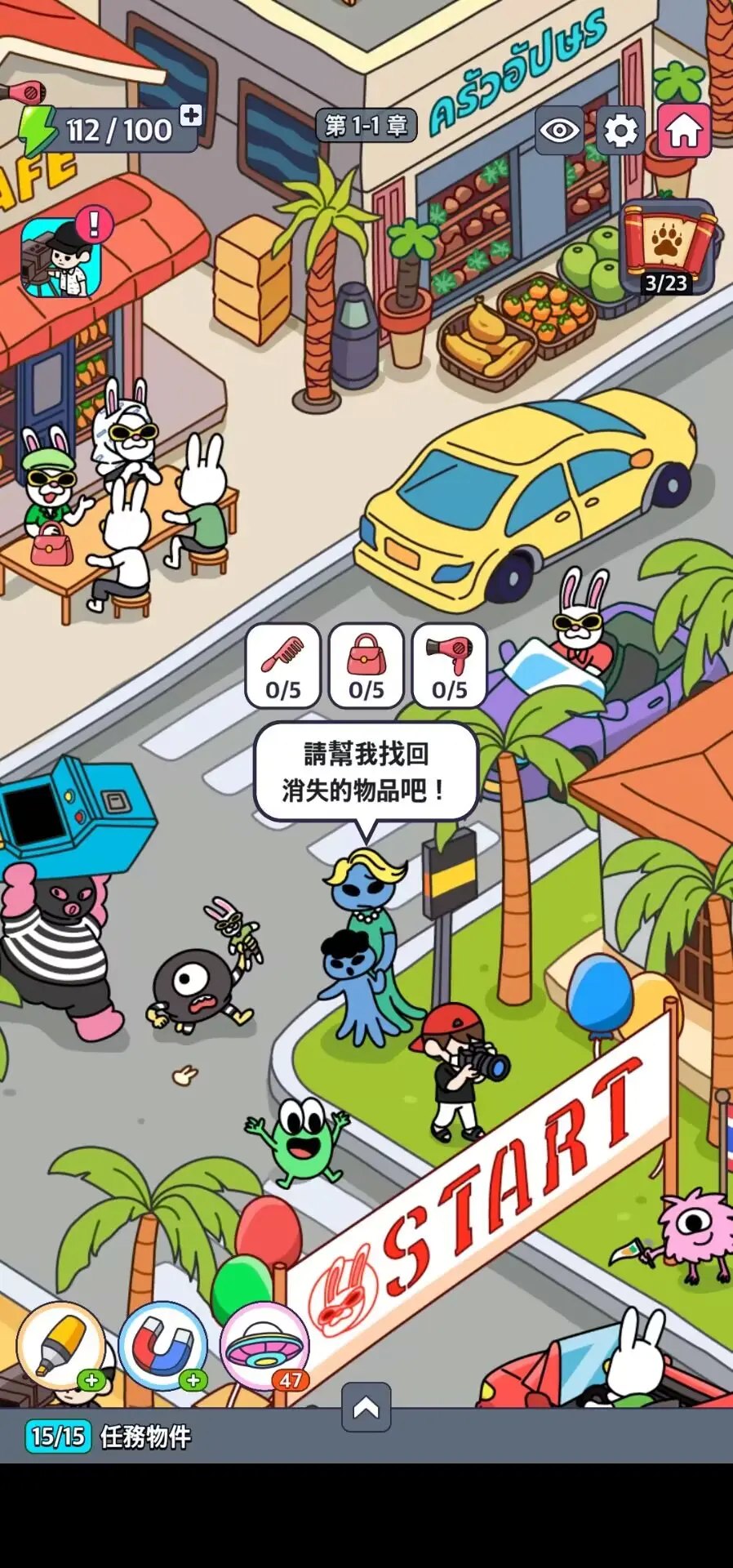 2. 进入游戏界面中,根据任务栏中的物件在场景中进行寻找