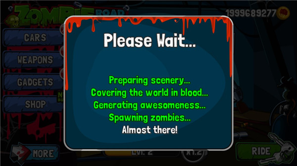 提高汽车性能就可以使速度有所保证,但一辆车只能升级2次;玩家也可以到商店购买豪车,土豪的速度必定有保证。在游戏中,你不仅要保持自己车子的平衡,找准下落的角度,还要使用车上的重型武器击碎这些僵尸。要是单纯的撞上去你的车子就会被减速,那就很容易失败了。每过一段路会出现一个加油站,车子经过这里的时候,僵尸会自己开始后退。当你在不停的击杀僵尸时,屏幕上方的能量条会增加,当蓄满力时,我们就可以如同疯狗一样疯狂向前冲。