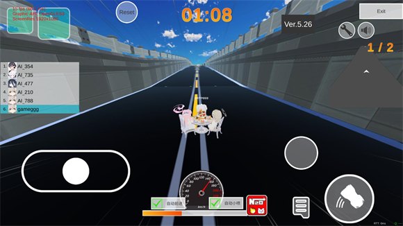 通过滑动屏幕可以控制卡丁车的方向。加速和刹车按钮分别用于加快或减缓车速。在赛道中,利用漂移技巧过弯能帮助保持较高的行驶速度。