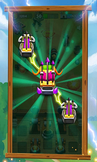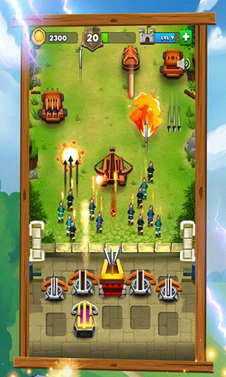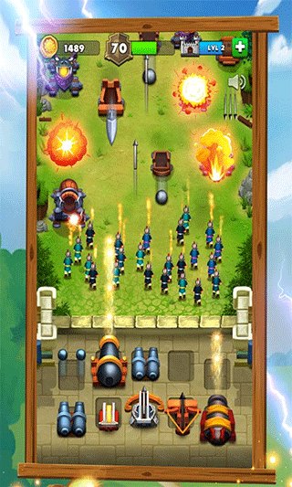 4. 使用金币购买炮台,然后合并升级,抵御一关又一关的敌军吧。
