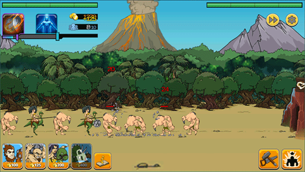 战争进化史2游戏也叫做战争时代2,英文名叫Age of War 2,是以策略塔防为主的战争游戏。玩家将从石器时代开始,借由召唤恐龙、原始人等来进行作战,并一路发展自己的文明,跨越古埃及、中古世纪、现代到未来。游戏提供了四种不同的难度供玩家选择,随着难度的增加,玩家也将体验到不同的玩法内容。