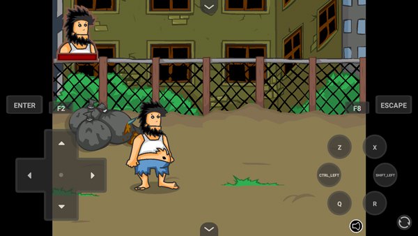 2. 左下角的按键控制流浪汉移动,右下角可以进行攻击。