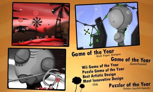 粘粘世界英文名称叫做World of Goo,是由2D Boy打造的休闲解压闯关游戏。在游戏中我们将进入一个神奇的世界,这个世界中有着大量的粘性小球,玩家需要利用这些小球进行各种建筑的搭建,完成每一个关卡任务即可。游戏为玩家准备了丰富的物品道具,玩家合理的使用与搭配可以更好的完成任务、顺利闯关!