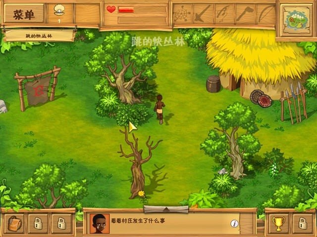 6. 游戏中期,在岛屿左下角有两个商店可以对你开放,上面一点的商店可以买卖任何物品,也是重要的金钱来源;下面那个商店可以购买工具,让你更轻易地获得资源(斧子,弓,鱼,锄头)