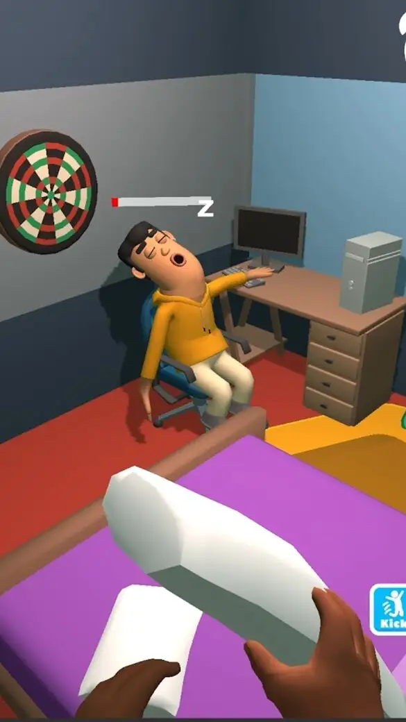 3. 在这个减压游戏中,你必须用各种方法叫醒男孩,比如踢他、向他扔东西或让他从床上掉下来。