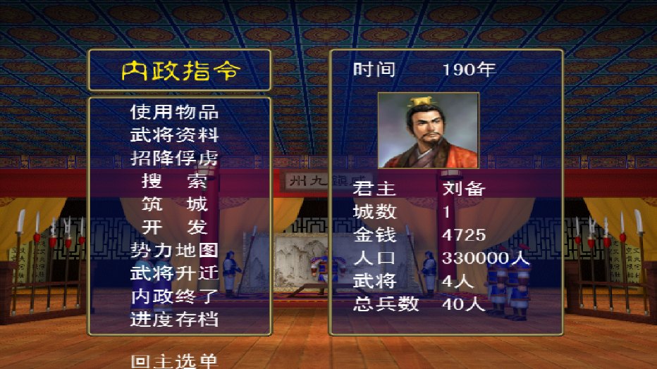 7、游戏中只有在内政时才能存盘,而取档只能退出游戏,回到主画面才行,另外还有时间限制。