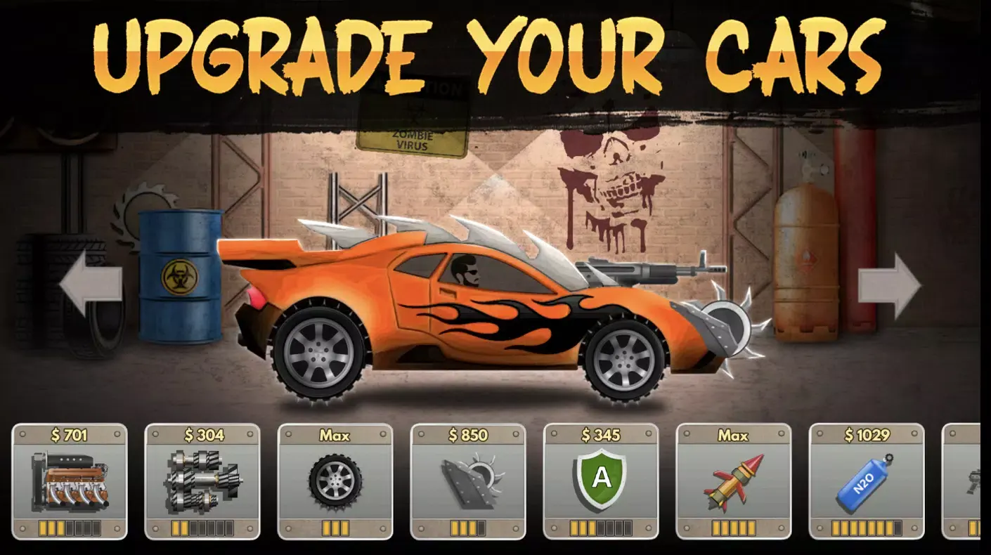 2. 赚取升级,根据速度,装甲和伤害选择僵尸汽车,如何更优雅地粉碎僵尸并粉碎对手。疯狂的 2D 赛车僵尸汽车模拟器会给你肾上腺素!