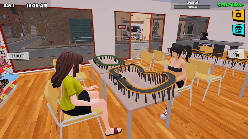 平台搭建:玩家需解锁并设置店内赛车平台,为顾客提供竞速场地。