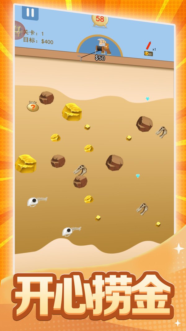3. 60个完全独特关卡,经典黄金矿工玩法,停不下来。