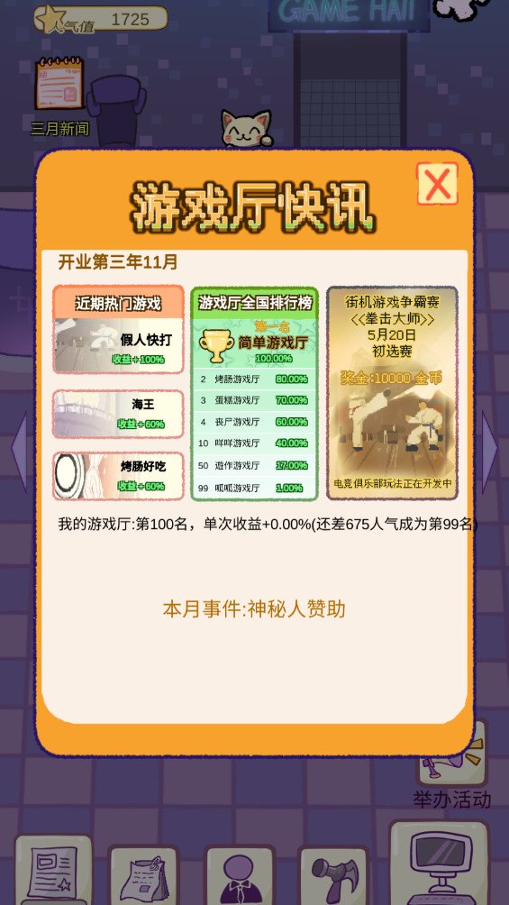 7.现在就可以经营你的游戏厅了。