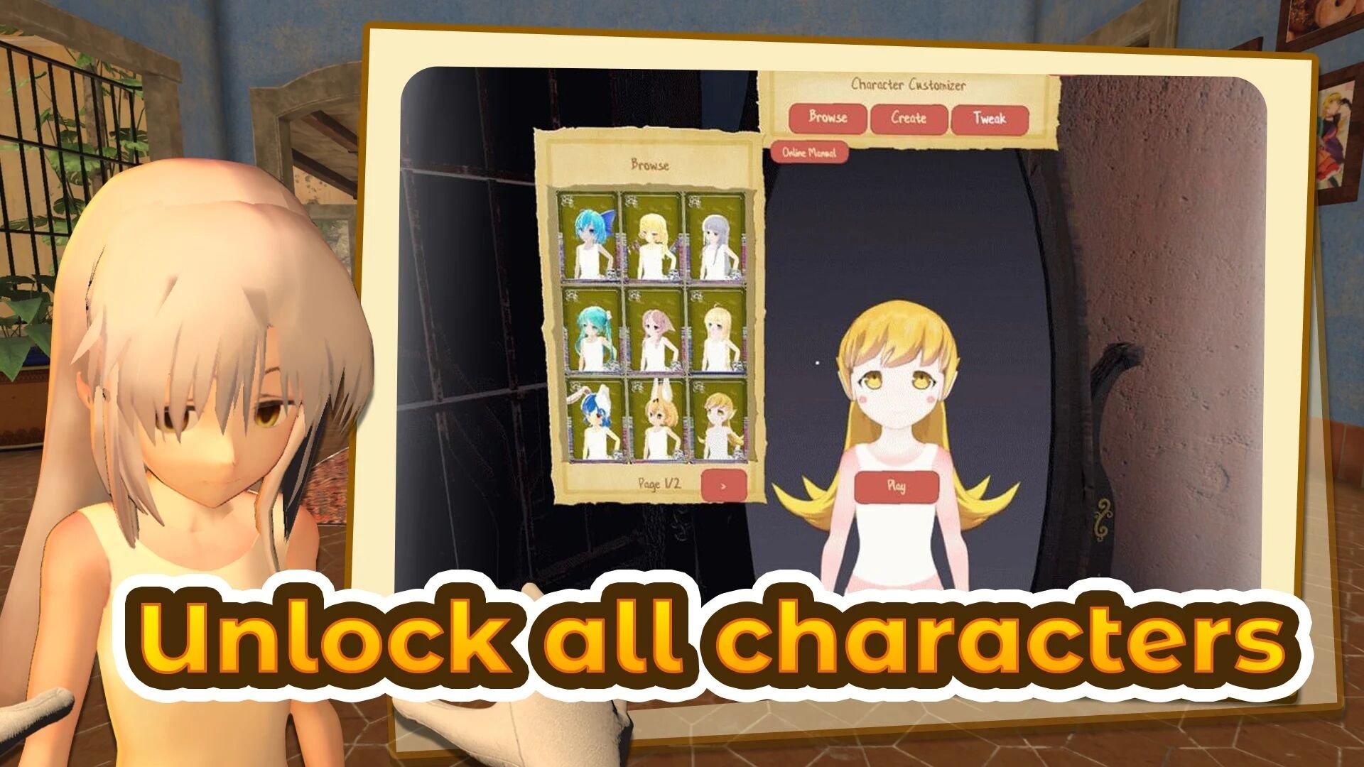 4. 选好后角色就会进入场景,尝试和她做各种趣味互动吧!