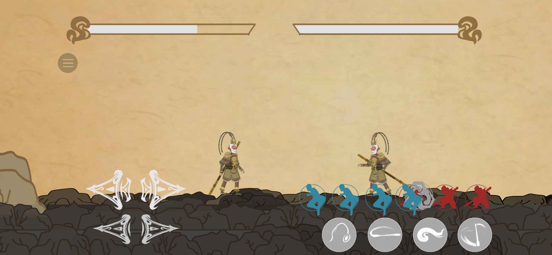 4. 点击上方的圆形按钮可以施展三种不同的棍法、金刚不坏和定身术,同时消除的圆形按钮越多招式威力越大。