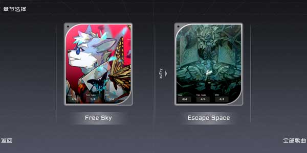 闯关模式:通过累计得分解锁章节剧情,例如完成“电子森林”章节后开启新角色Asgen的专属曲目。