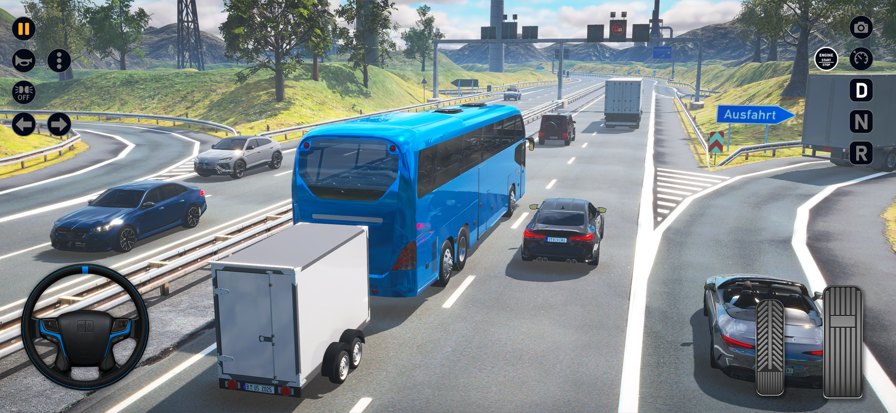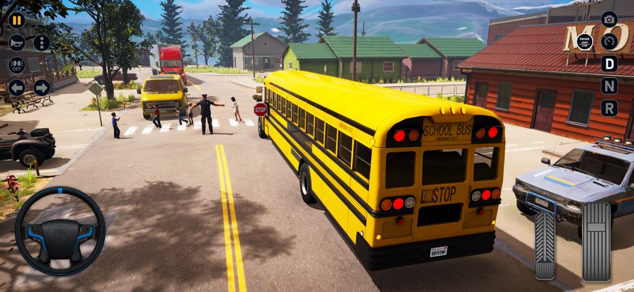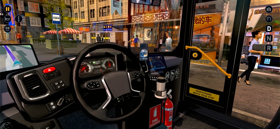 2. 使用左侧的方向盘灵活控制巴士的移动。前方的地图可以帮助你更好地规划路线。在转向时,记得打开转向灯,确保安全。