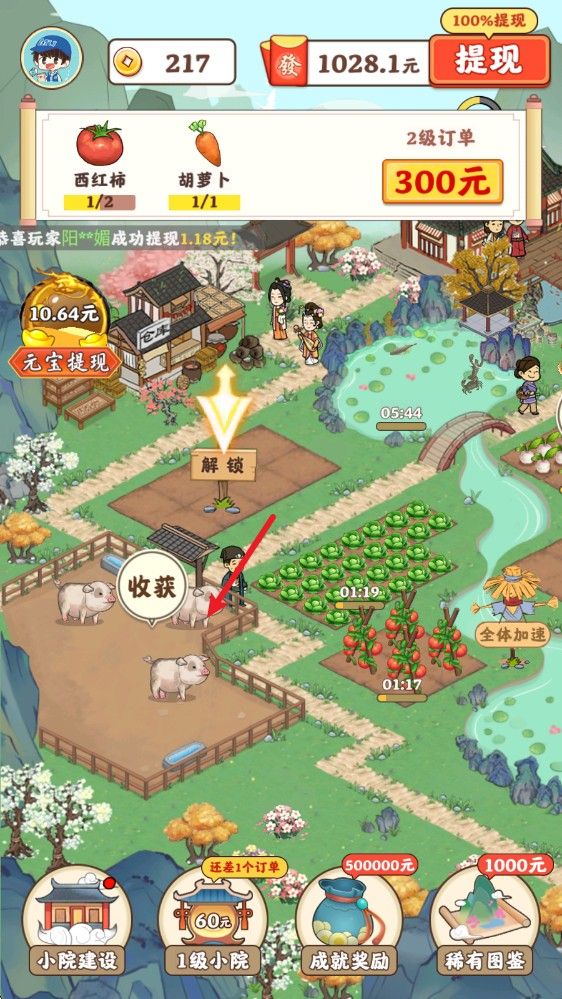 桃源有良田红包版是一款采用了卡通古风题材进行打造的模拟经营类型的游戏,玩家们可以在游戏中感受到十分简单轻松地玩法。你需要在农田当中去种植很多不一样的农作物,饲养各种小动物去赚钱丰厚的回报。整个游戏没有任何复杂的操作,根据订单完成任务就可以获得回报了。