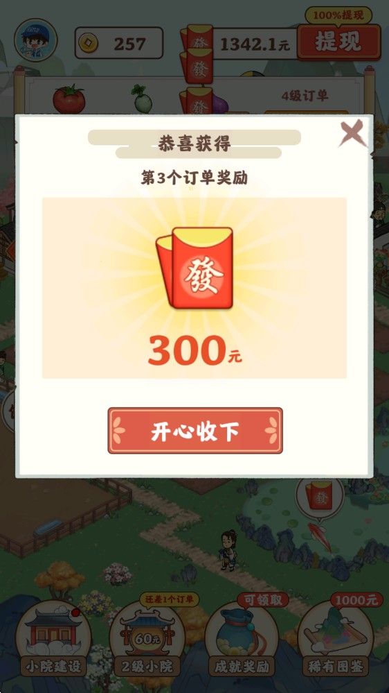 5. 完成订单任务后,你将获得丰厚的奖励,包括金币、道具等,助力你的农场发展。