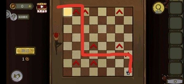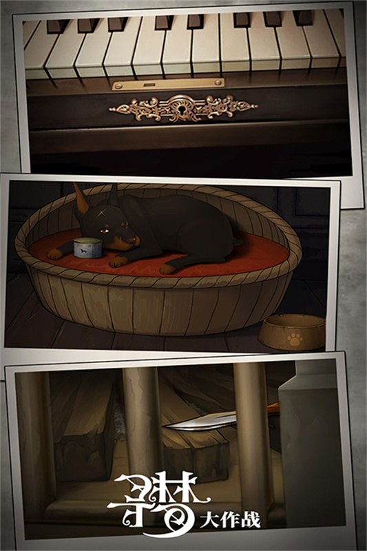 1. 根据狗窝,画像,棋盘,地毯得出沙发旁箱子的密码,拿到狗粮罐头给狗狗吃,得到棋子,完成棋盘游戏(如图)拿到钥匙开琴。