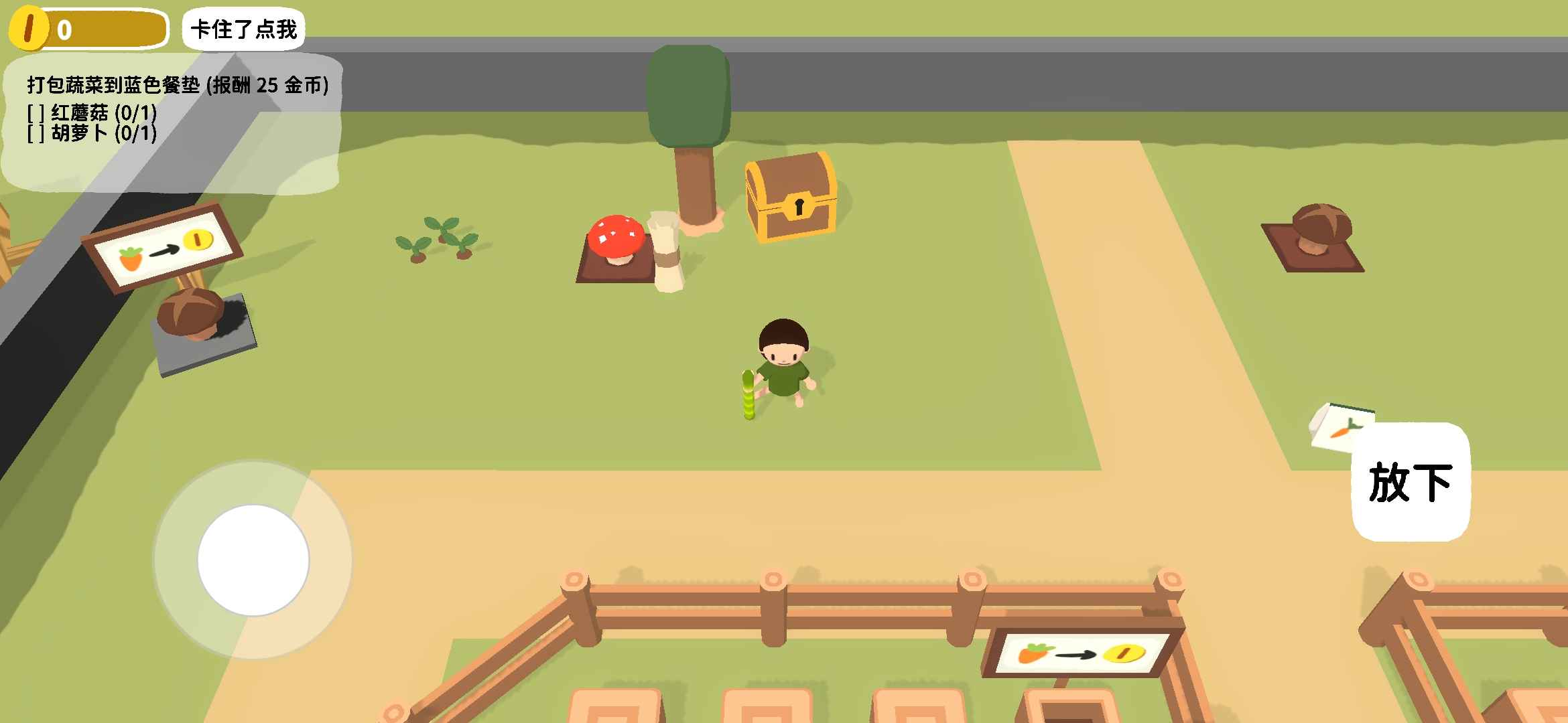 在游戏右上角有任务显示,放置蔬菜到游戏下方即可获得金币售卖蔬菜。