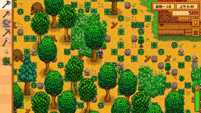 7、走出房间后可以在附近开始开荒,左侧是工具栏