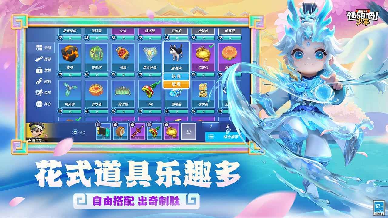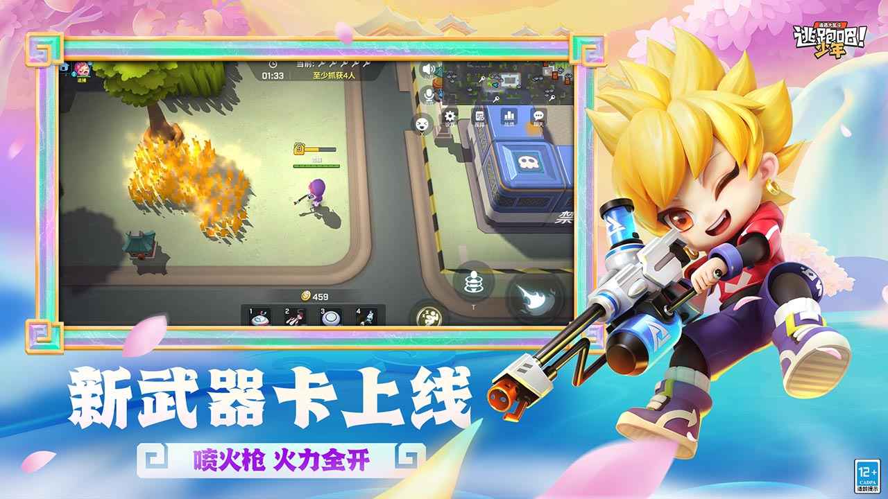 逃跑吧少年采用Q版模型的设计,以4v1非对称玩法为核心,玩家可自由选择逃生者或者追捕者身份,逃生者需要协作破解保险箱获取钥匙,开启逃生门;而追捕者则需要击倒囚禁逃生者,阻止他们逃脱。游戏能够邀请多人一起开启对抗竞技。