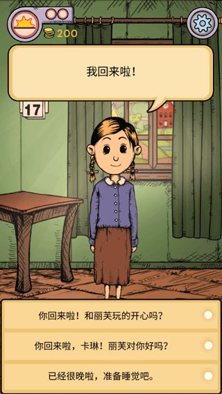 16. 如果要结束这一天可以选择点击卡琳房间的台灯