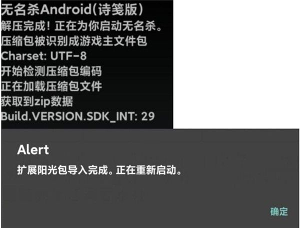 五、导入成功后游戏会弹出提示,随后自动重启。