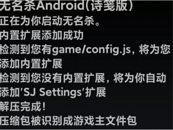 1. 下载《无名杀诗笺版(安卓).apk》,安装后至少打开一次游戏,首次打开游戏时会出现以下界面。若您下载的是本 apk 的懒人包版本,会自动跳转到步骤三。