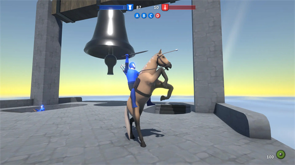 4. 最后玩法非常的简单左边的摇杆是用来控制角色的移动而右边的按钮是操作键,把敌人打倒获取到五十分后就代表闯关成功。