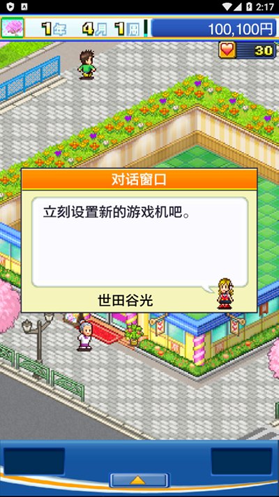 2. 进入游戏后根据新手提示放游戏机了,进入设置点【街机】放里面的游戏机,放三个在一起就可以出专区了,能提高魅力值增加客人使用。