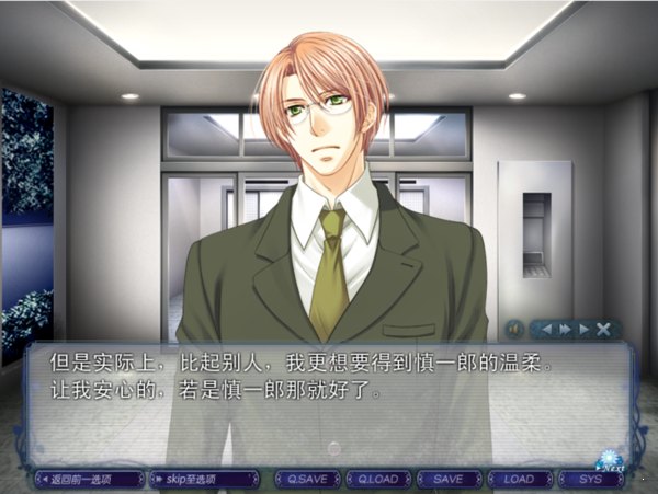 女主的丈夫,两人因工作相识,感情逐渐发展后他向女主求婚并结婚。婚后因为工作忙碌,女主时常感觉被忽视。虽然慎一郎起初的形象不算特别帅气,但在剧情后半段,尤其是摘下眼镜之后,他的魅力大幅提升。没有体验过这条线的玩家不妨尝试一下丈夫线。