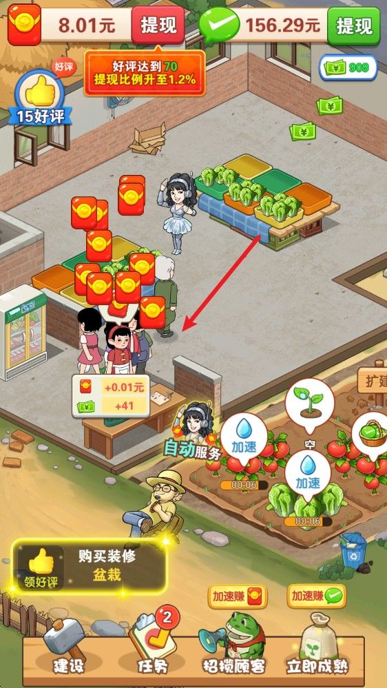 4. 完成销售后,前往收银台进行收银,即可获得奖励。合理管理菜市场,提升经营效率,获取更多收益。
